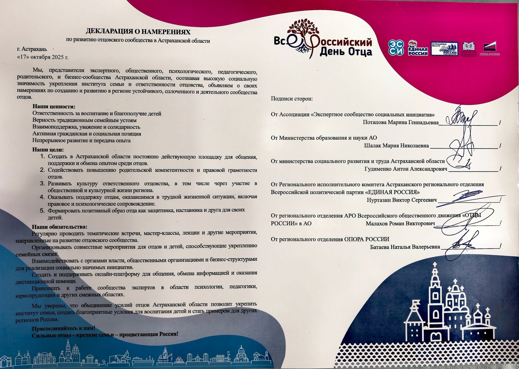 «Подписание Декларации — это важный шаг в признании роли отца в современном обществе. Мы готовы предоставить свои площадки для реализации совместных программ», — добавил представитель Управления образования.